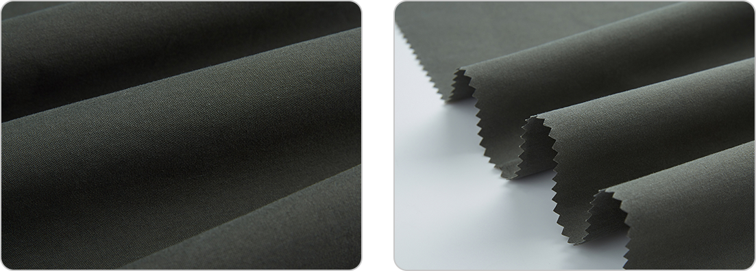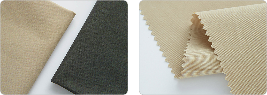 Es besteht aus 72 % Baumwolle, 28 % Nylon, Oxford, 155 g/m² und einer Breite von 56 Zoll, sodass es mit seiner Mikrosand- und steifen Oberfläche zu einem Damenmantel verarbeitet werden kann.